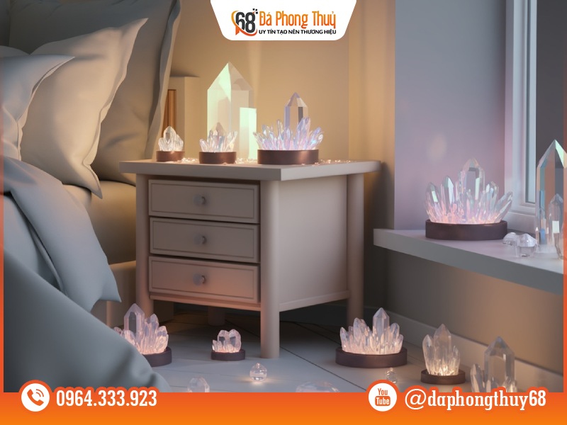 | Thạch anh trắng | Phòng ngủ trung tính, phòng nam | Thanh lọc không gian, cân bằng năng lượng nhẹ nhàng |