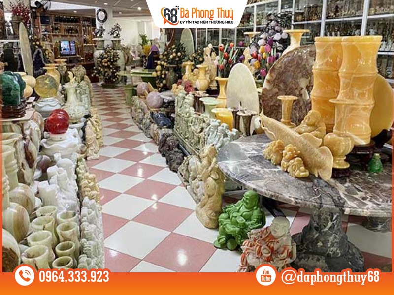 Đặc điểm: Cửa hàng chuyên cung cấp đá phong thủy thiên nhiên với hệ thống showroom rộng hơn 150m². Đá Phong Thủy 68 nổi bật với dòng tháp Văn Xương kết hợp đế sen đá, tạo thêm ý nghĩa thanh tịnh và trí tuệ trong học hành.