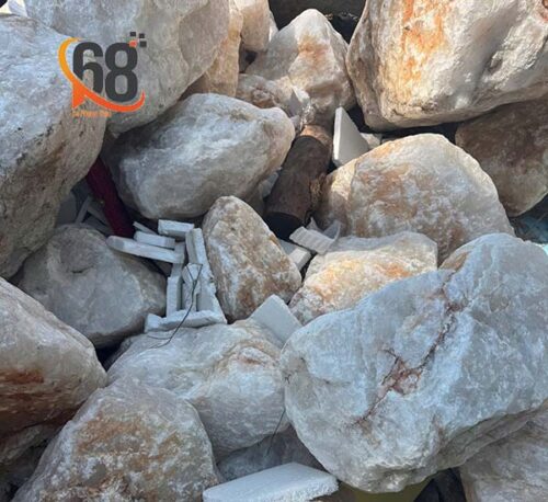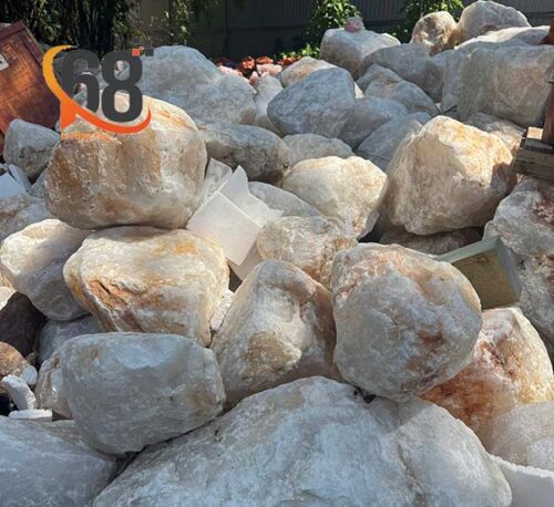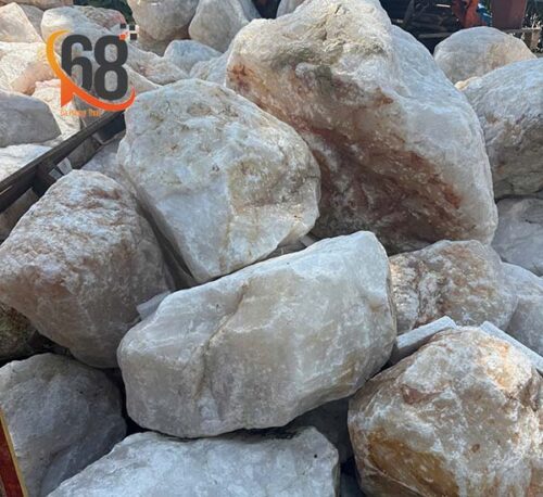 Đá thạch anh trắng thô có vẻ ngoài mộc mạc nhưng đầy sức hút. Bề mặt còn giữ những vết gãy tự nhiên, tạo nên nét riêng biệt cho từng viên đá.