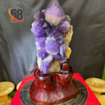 Sắc tím huyền bí không chỉ đẹp mắt mà còn mang năng lượng cao, gắn liền với trí tuệ và sự thanh tịnh trong tâm linh. Trọng lượng lớn 5.86kg tạo cảm giác vững chãi, thích hợp trưng bày tại phòng khách, bàn làm việc hay không gian thiền định.