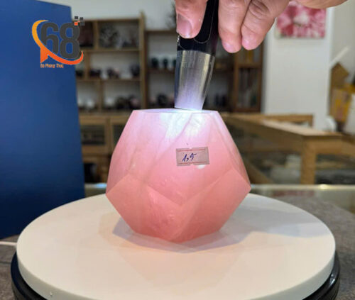 Vật phẩm trang trí tinh tế: Quả bi giác thạch anh hồng không chỉ mang giá trị phong thủy mà còn là vật phẩm trang trí tinh tế, giúp không gian thêm sang trọng và ấm áp. Hình dạng độc đáo kết hợp sắc hồng dịu dàng tạo điểm nhấn đẹp mắt cho bàn làm việc, kệ trang trí hay đầu giường. Ánh sáng chiếu qua các mặt cắt tạo hiệu ứng lung linh, mang lại cảm giác thư giãn cho người ngắm nhìn.