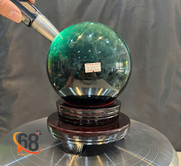 Viên cầu được gia công tỉ mỉ từ khối đá Fluorite nguyên khối. Bề mặt bóng mịn, phản chiếu ánh sáng tạo nên những tia sáng lấp lánh như ngọc bích. Trọng lượng gần 5kg mang đến cảm giác vững chãi, tượng trưng cho sự vững vàng trong cuộc sống.