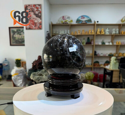 Quả Cầu Đá Thạch Anh Đen 4.65kg được chế tác từ nguyên liệu thạch anh đen tự nhiên hoàn toàn. Bề mặt được mài bóng tỉ mỉ tạo nên độ sáng bóng cuốn hút. Hình dạng cầu tròn hoàn hảo tượng trưng cho sự viên mãn và cân bằng trong phong thủy. Trọng lượng đáng kể giúp tạo cảm giác vững chãi và uy quyền cho không gian đặt.