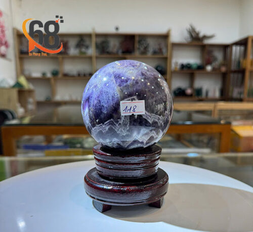 - An thần & cân bằng: Viên cầu tím giúp xua tan lo âu, căng thẳng tích tụ trong ngày. Đặt trong phòng ngủ mang lại giấc ngủ sâu, giảm ác mộng và tạo cảm giác bình yên cho tâm hồn.