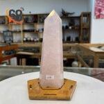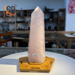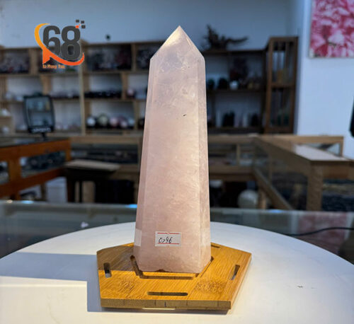 Sắc hồng dịu nhẹ của đá thạch anh hồng mang năng lượng êm dịu, dễ chịu. Hình dáng trụ thẳng đứng giúp viên đá dễ dàng đặt ở nhiều vị trí khác nhau trong nhà.