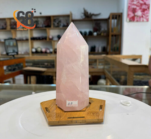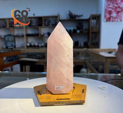 Sắc hồng dịu mắt của thạch anh hồng mang năng lượng êm ái, dễ chịu. Đỉnh trụ nhọn giúp tập trung vượng khí, tạo luồng sinh khí mạnh mẽ cho không gian.