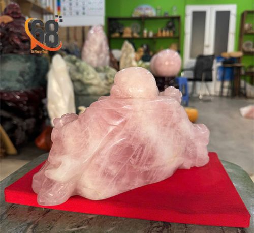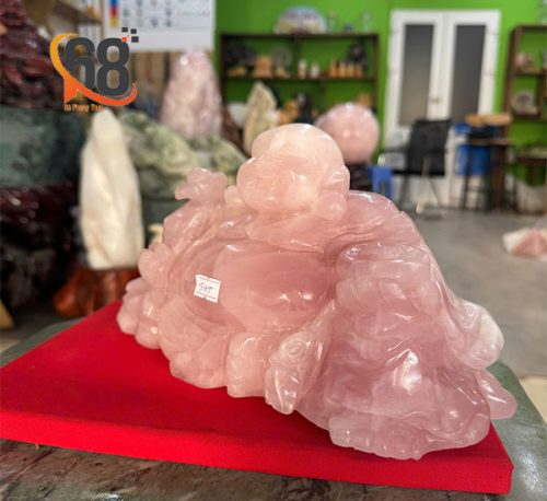 Thạch anh hồng – đá của tình yêu: Kết hợp cùng nụ cười từ bi của Di Lặc, tượng mang đến sự gắn kết, hòa thuận trong gia đình và các mối quan hệ.