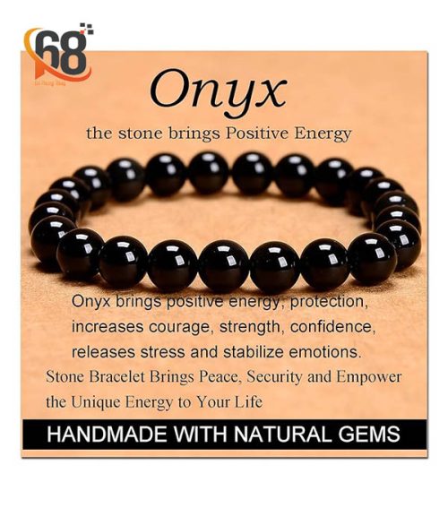 - Theo phong thủy, vòng đá Onyx đen đặc biệt phù hợp với người mệnh Thủy và Mộc, giúp thu hút năng lượng tích cực, gia tăng may mắn.